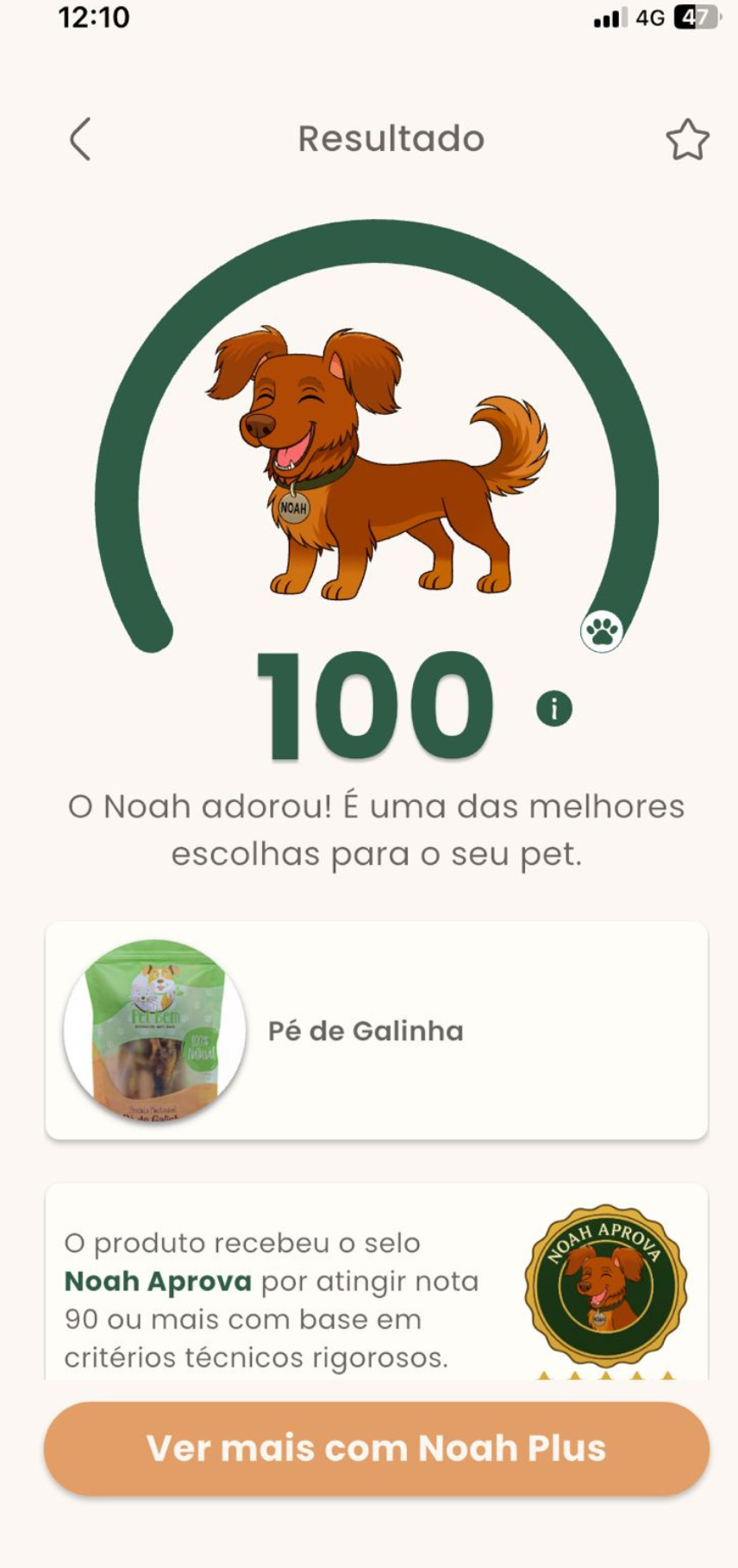 O Selo Noah Aprova exibido dentro do aplicativo tem caráter exclusivamente técnico e informativo, concedido automaticamente a produtos que atingem nota de 90 a 100.